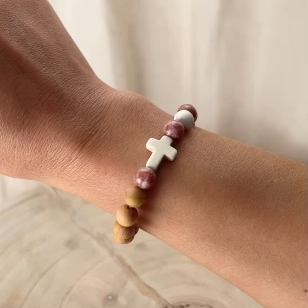 If you're looking for a meaningful and thoughtful gift for a special occasion, look no further than these beautiful rosary bracelets. Made with Bronzite, Thuja wood, and a White Turquoise cross charm, making it the perfect way to honor life's most sacred moments. Ideal for Baptisms, First Communions, or Confirmations, this bracelet features a comfortable one-size-fits-most (7.0") design and provide a meaningful way to commemorate life's most cherished memories.